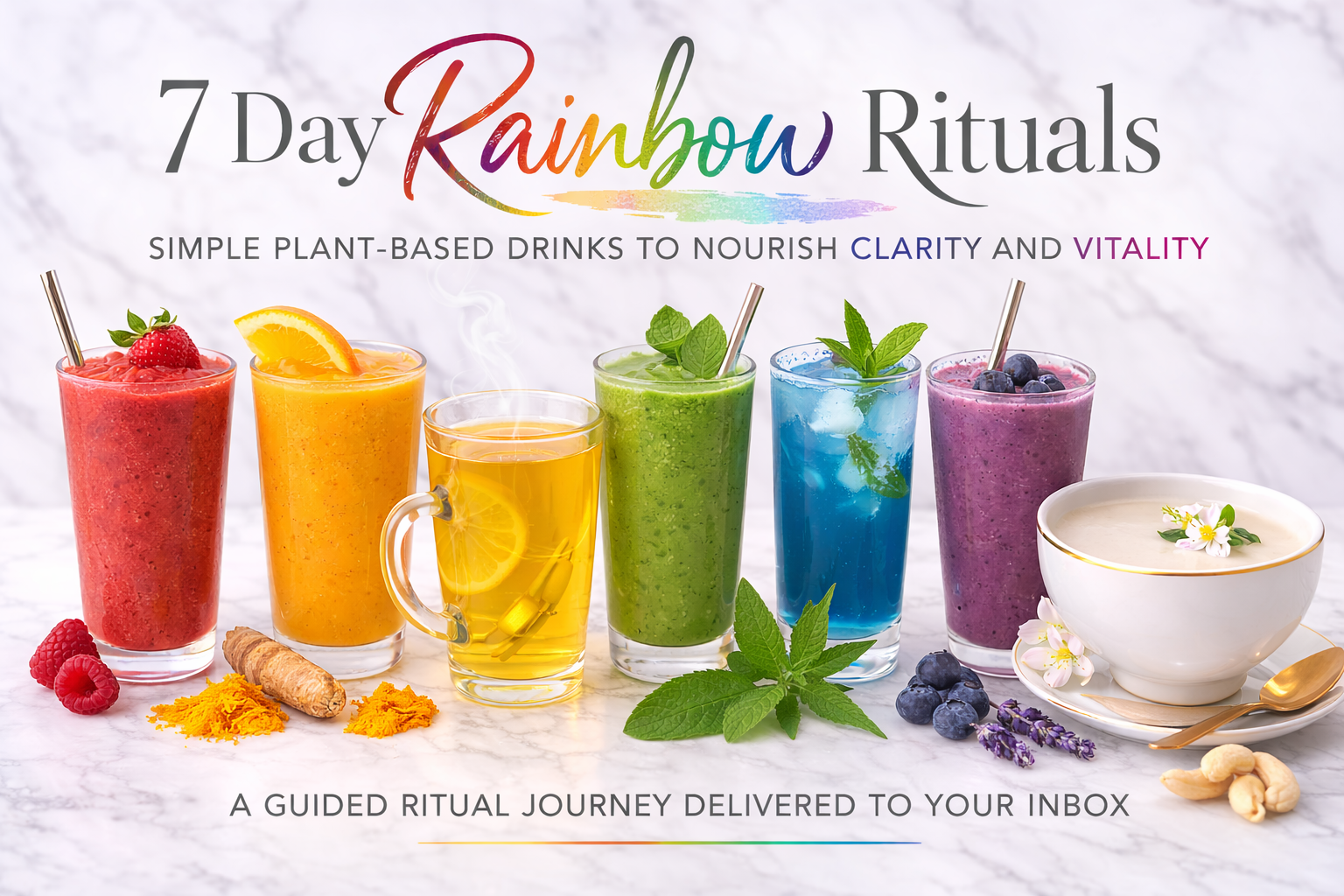 The 7 Day Rainbow Rituals is a gentle introduction to this philosophy β combining nourishing drinks, calming rituals and mindful moments designed to support clarity, vitality and wellbeing.